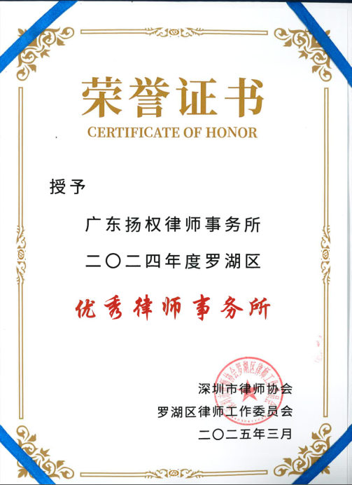 广东扬权律师事务所将再接再厉,把荣誉作为新的起点,继续秉承着“扬权人的精神”每一步的努力都是收获的希望,让我们坚定信心,继续向前行,2025继续努力奋斗。